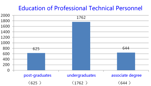 The Academy has 5002 staffs in total, including 3662 professional technical workers, which accounts for 73% of the total staffs number, the structure of professional technical personnel has been classified according to different titles and degrees as below: