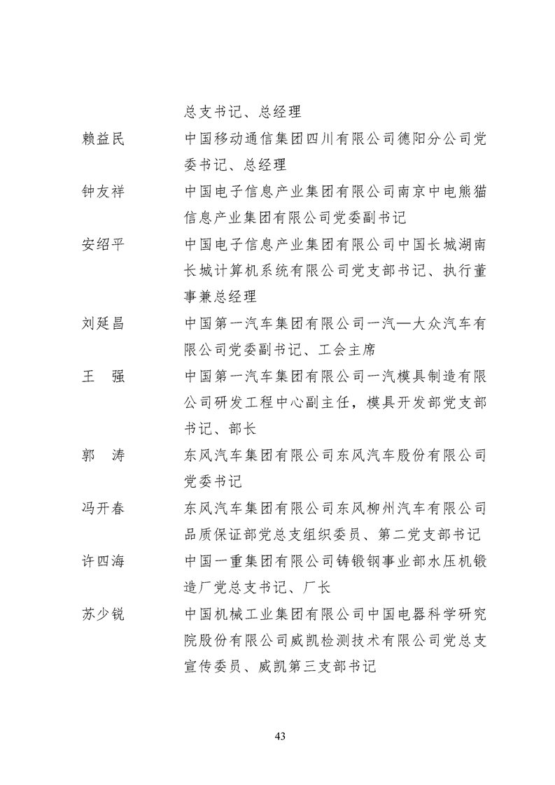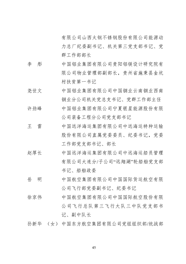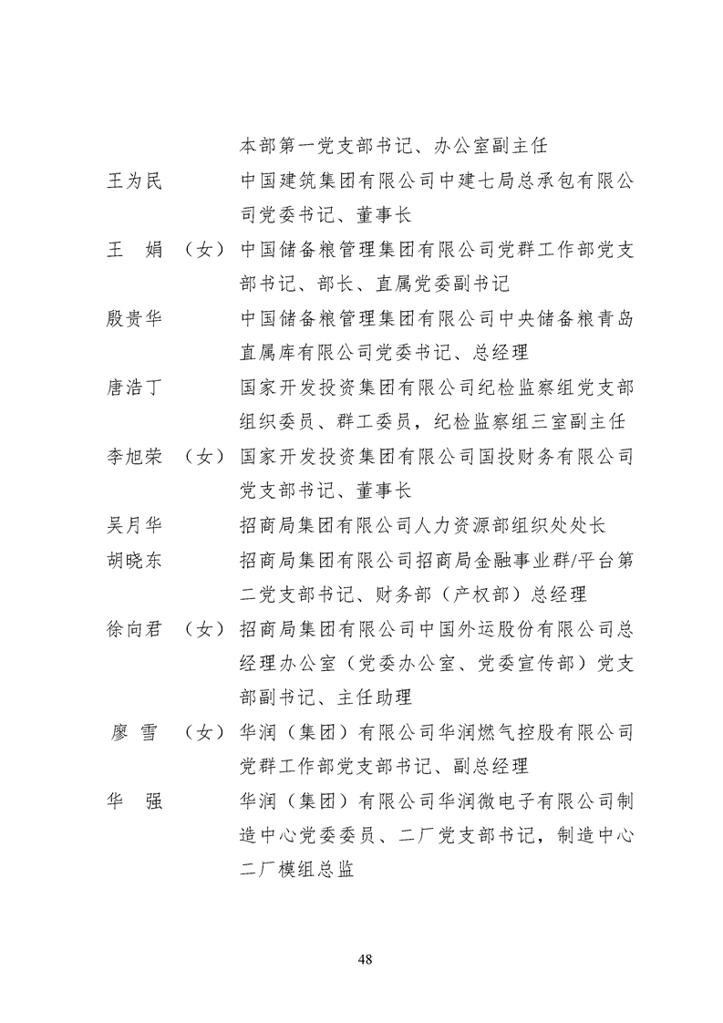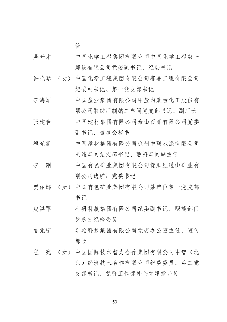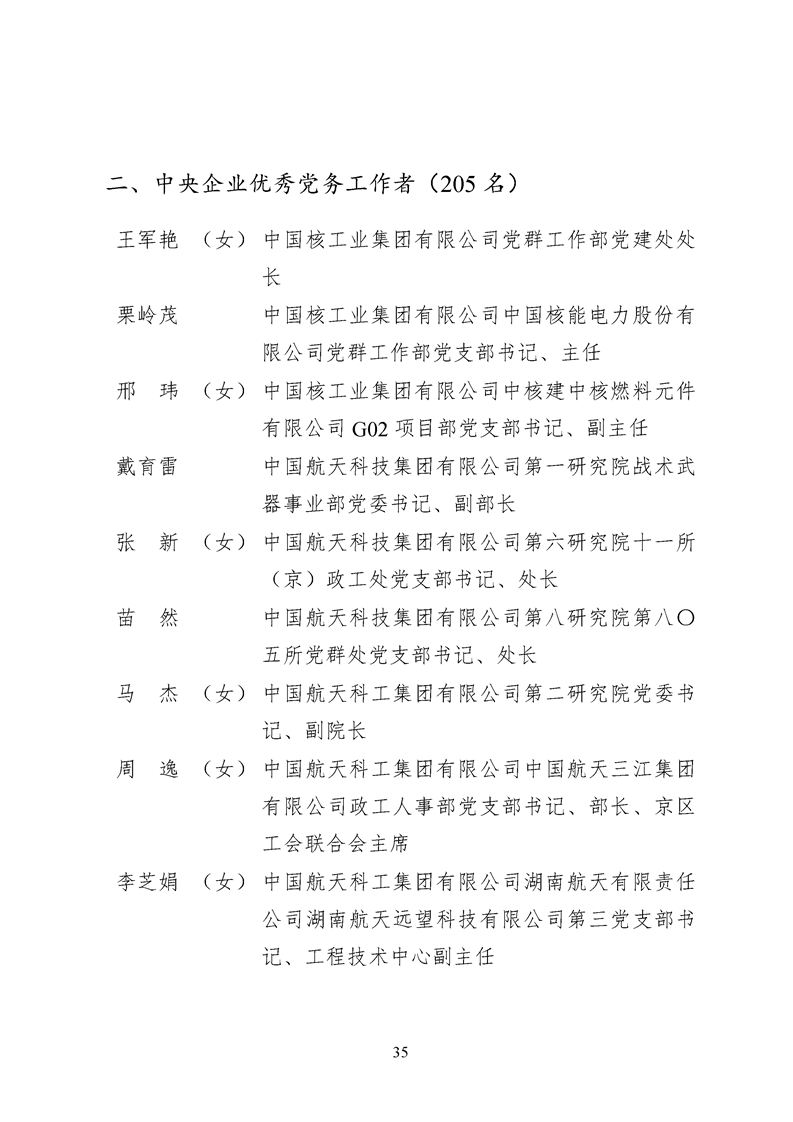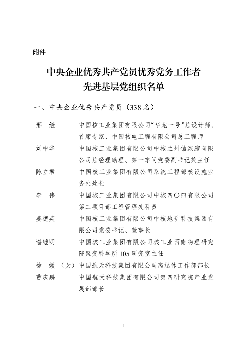 為表彰先進、弘揚正氣,激勵各級黨組織和廣大共產黨員在把握新發展階段、貫徹新發展理念、構建新發展格局中奮發有為、建功立業,國資委黨委決定,授予邢繼等338名共產黨員“中央企業優秀共產黨員”稱號(含追授2名),授予王軍艷等205名黨務工作者“中央企業優秀黨務工作者”稱號,授予中國核工業集團有限公司福建福清核電有限公司黨委等448個基層黨組織“中央企業先進基層黨組織”稱號。這次表彰的優秀個人和先進集體是中央企業各條戰線上的杰出代表,他們的先進事跡和崇高精神充分展示了新時代共產黨人的先進性和純潔性,生動詮釋了中央企業共產黨員的初心和使命,彰顯了國有企業先進精神的無窮偉力。